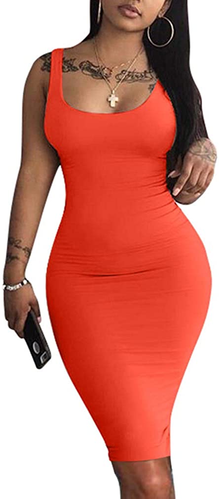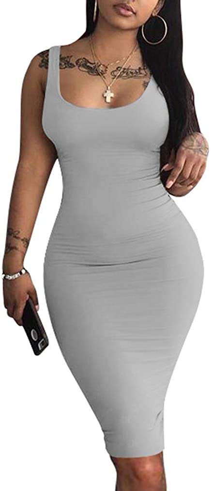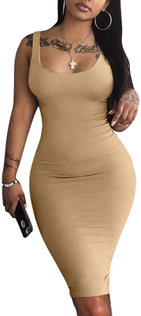Material: 90% Polyester +10% Spandex,The material is not thick.Lightweight, soft and good stretchy, make you more comfortableFeatures sleeveless,tank,knee length,racer back,bodycon,package hip,solid color